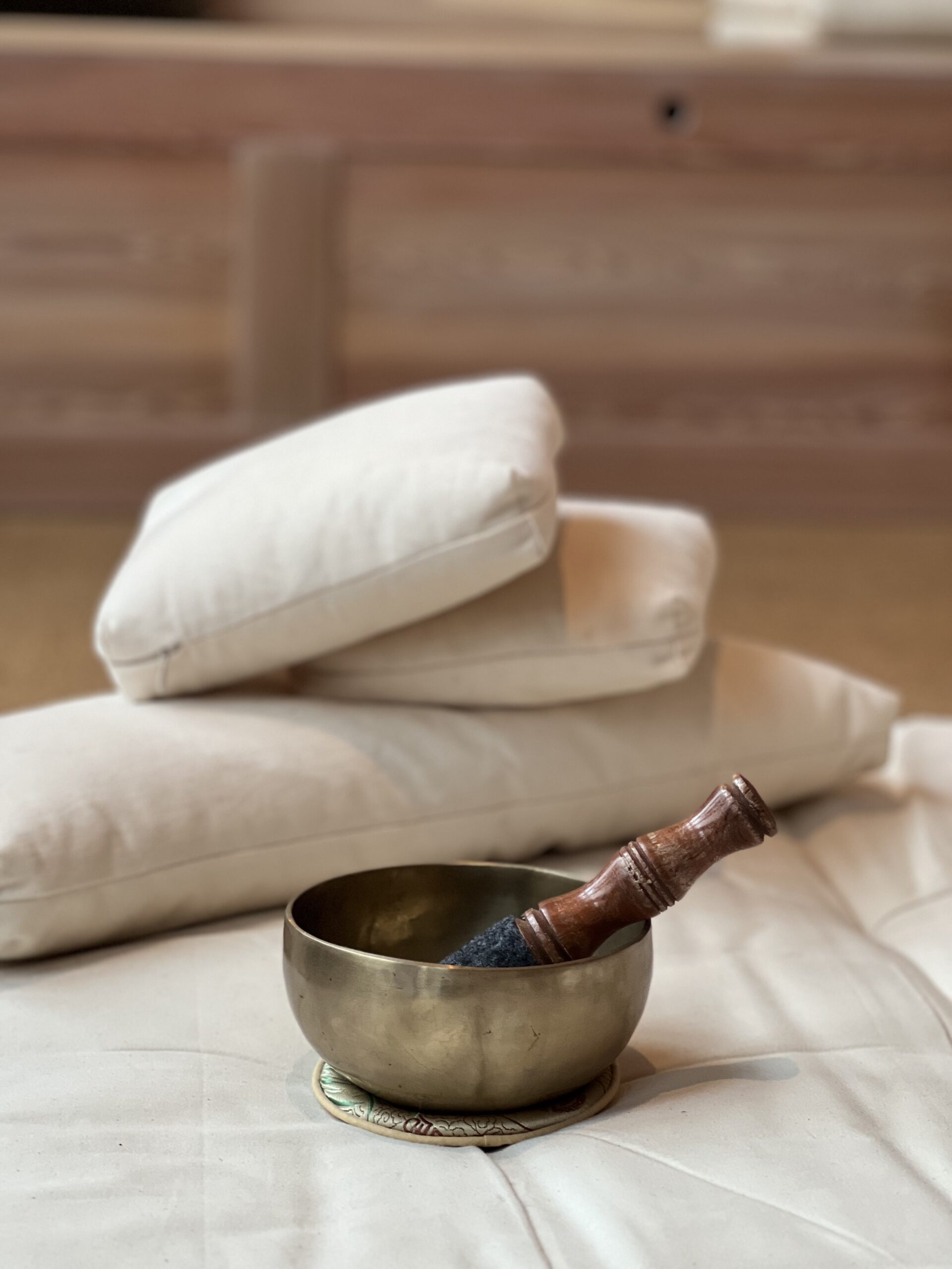 Der zentrale 50 m² große Raum bietet viel freie Fläche für Bewegung, Gruppenarbeit oder ruhige Sessions. Ein seitliches Sitzpodest, eine kleine Gesprächsecke mit zwei Sesseln und Tisch sowie eine Garderobe schaffen eine angenehme Atmosphäre. Zusätzlich stehen eine vollständig ausgestattete Küche mit Essplatz und eine Toilette zur Verfügung. Der Raum liegt ebenerdig und ist über zwei kleine Stufen erreichbar (barrierefrei möglich).